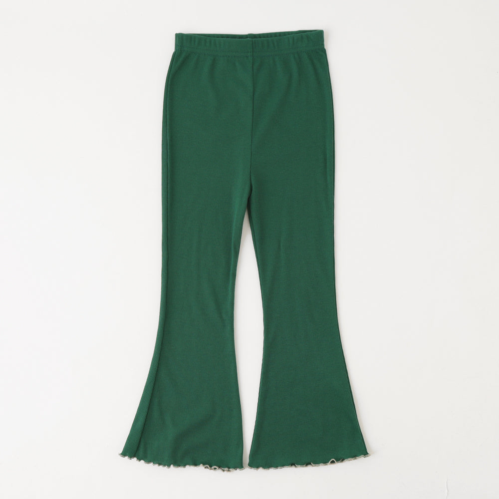 とにかくシルエットが綺麗なキッズ服では出会えないセミフレアな美シルエットにこだわったレギンスパンツが 今年も春夏リブ素材にアップデートして登場!