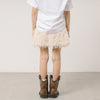 エアリーな着心地のフェザーが魅力的な他にはないオリジナル素材を使用した 脚長効果抜群の盛れる台形ミニスカートが登場! さらにインナーパンツ裏地付きで快適&安心設計◎ フェザージャガード素材は肌あたりが柔らかくチクチクせず、軽やかで涼し気なエアリー感と