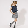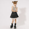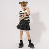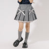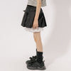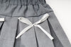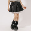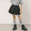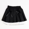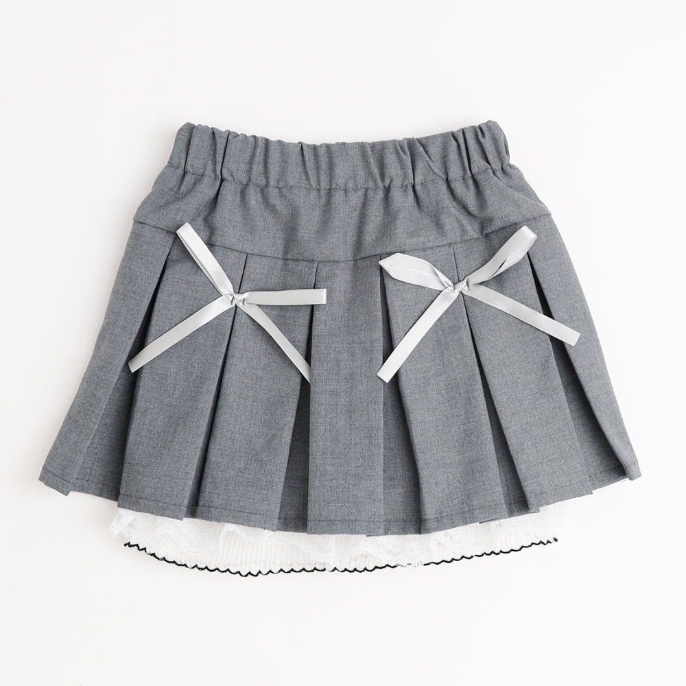 リボン付きプリーツスカートに、透け感のあるレーススカートをレイヤードした、