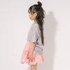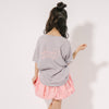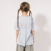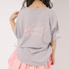 フロントの胸元にはリボンを、バックには大きくレタリングロゴをプリントした