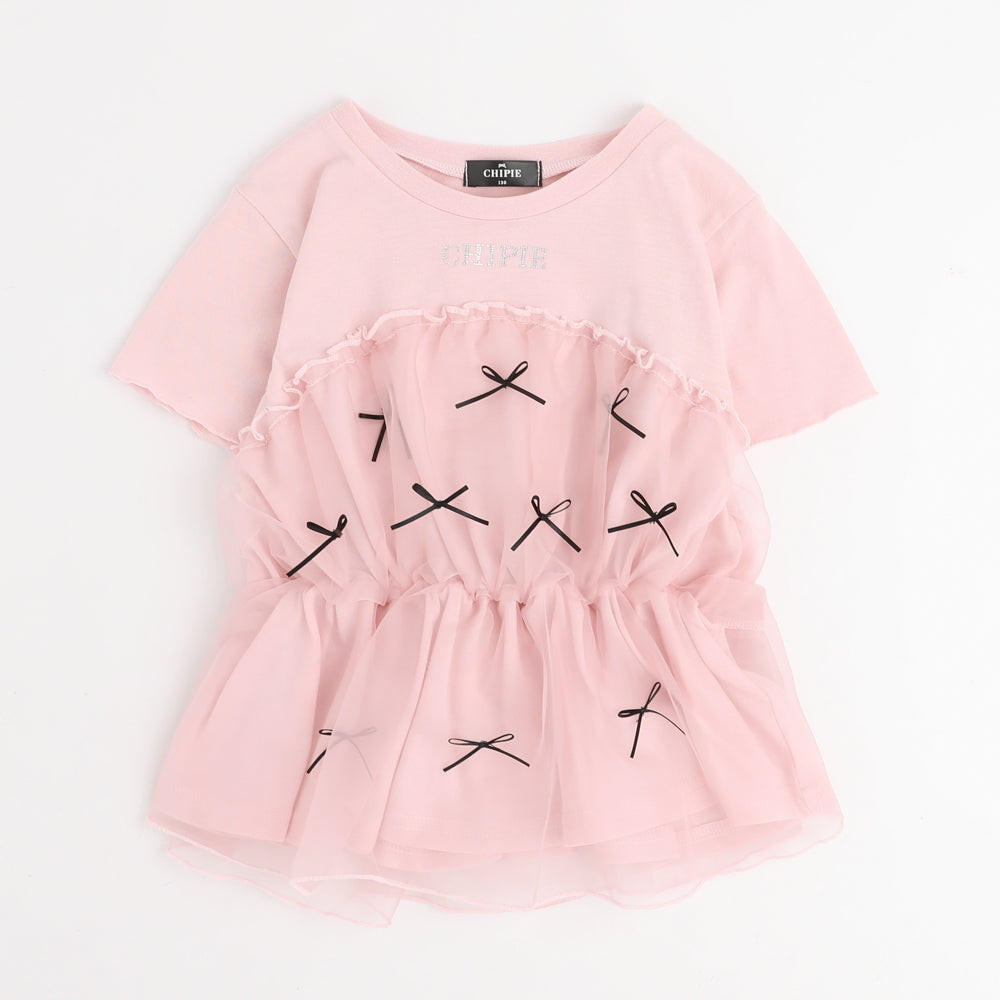Tシャツにふんわりチュール素材をドッキングしたコーディネート要らずでスタイリングが決まるトップス。