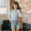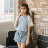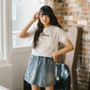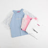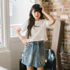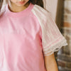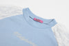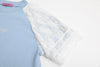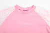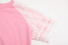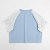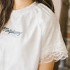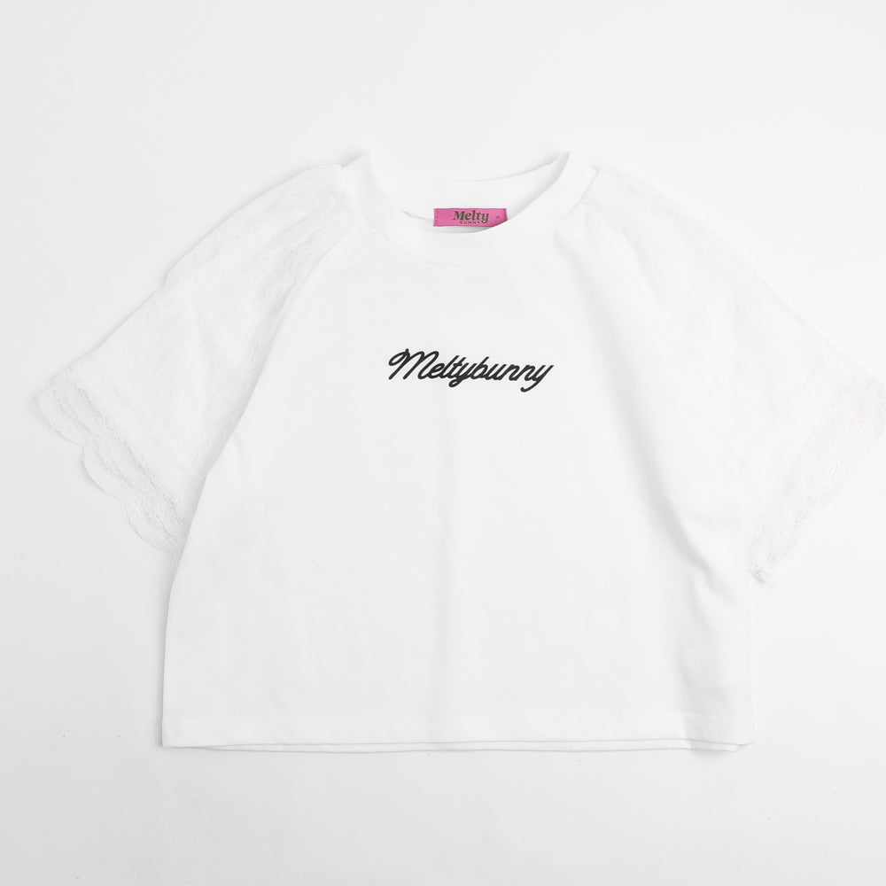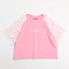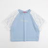 袖にたっぷりのレースをドッキングしたレディライクなラグランTシャツ。