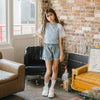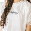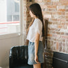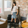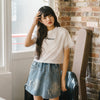 デニムボトムスでカジュアルダウンしても決まり、合わせるアイテムを選ばない万能トップスです。