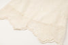 ふんわりとしたレース素材に、ほんのり透け感のある軽やかな仕上がりが特徴です。