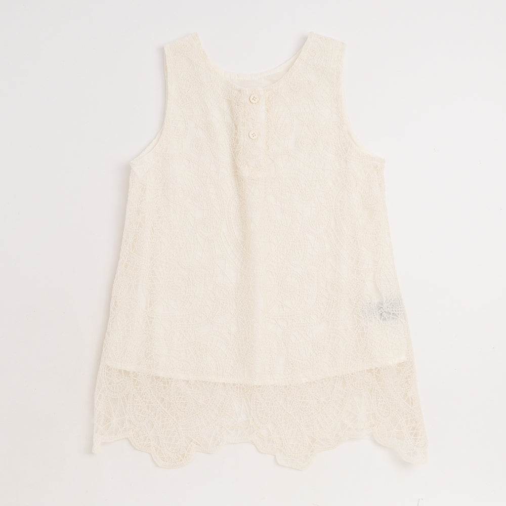 ナチュラルな風合いのレースのノースリーブチュニックトップス。