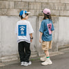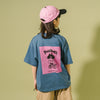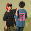 イラストをプリントしたオーバーサイズのデザインTシャツ。