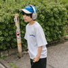 フロントはブランドロゴのワンポイント刺繍、バックはキャッチーなオリジナルキャラクターの